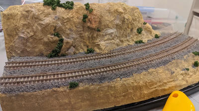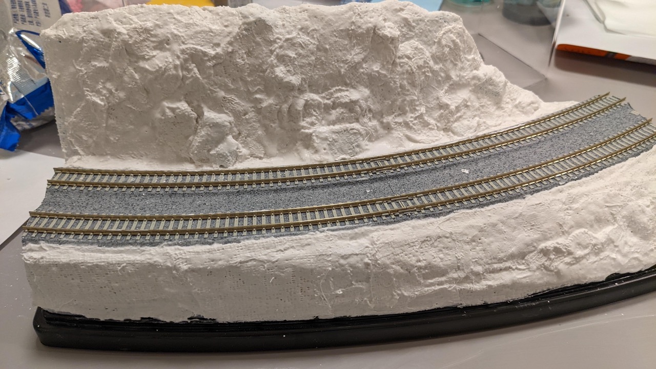 プラスタークロスをくちゃくちゃにして盛ったり、スタイロフォームの切れ端を下に置いてプラスタークロスで隠したりして岩感を出してみた