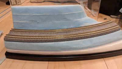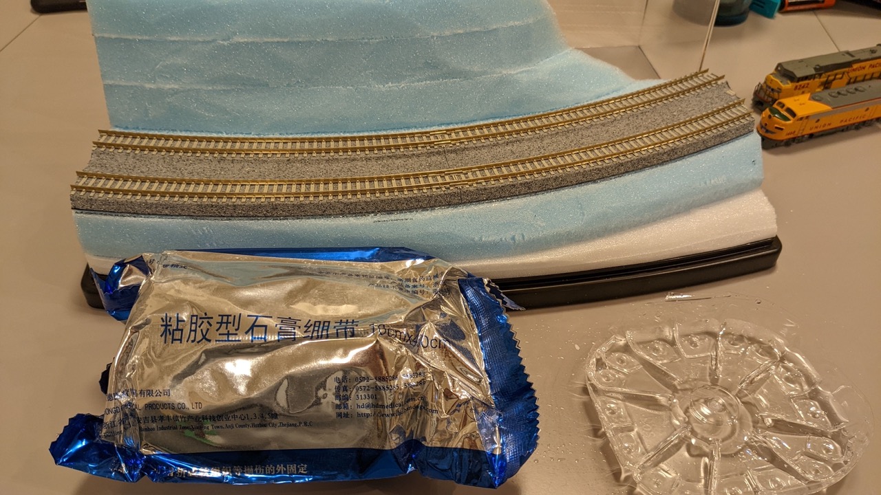 ケースとスチレンボード、スタイロフォームと線路はゴム系接着剤で固定した