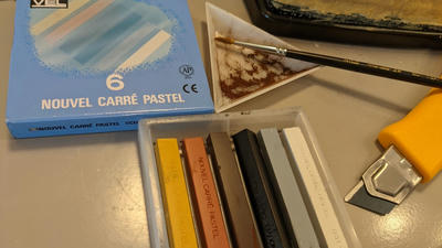 ウェザリングはパステルをカッターで削った粉でやってみた