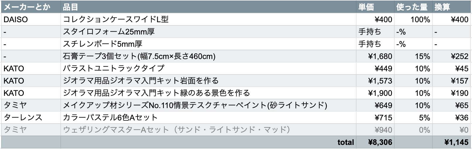 ウェザリングマスターは結局使わなかった